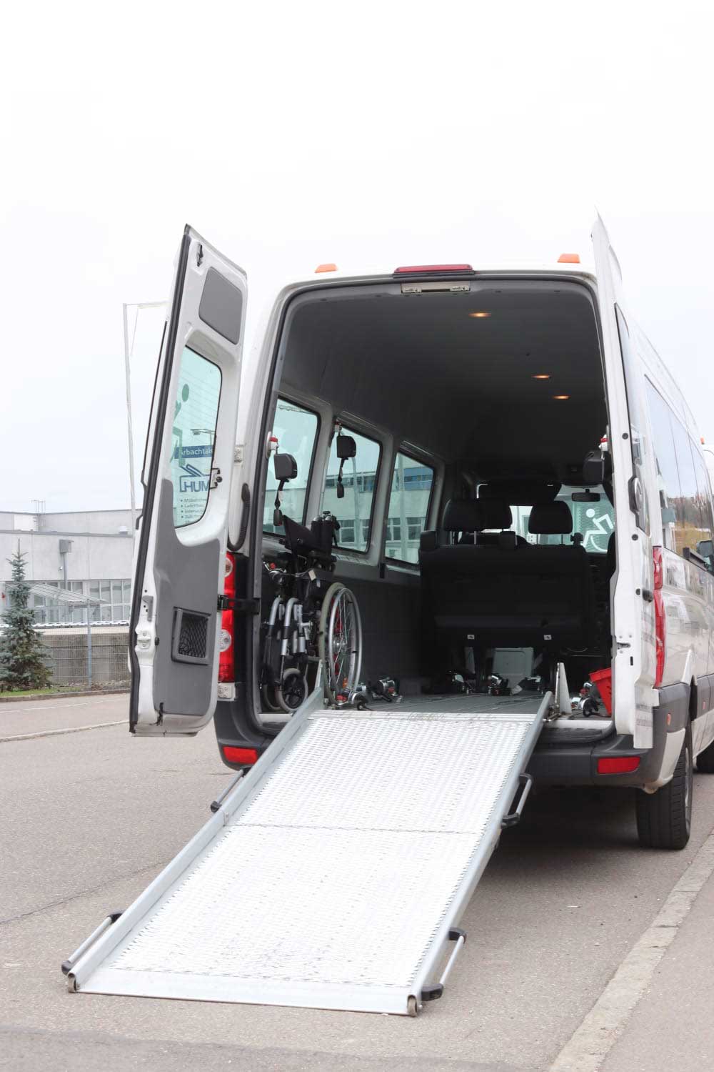In den Fahrzeugen haben bis zu vier Rollstuhlfahrer Platz. In fast allen Fahrzeugen führen wir einen eigenen Rollstuhl mit.